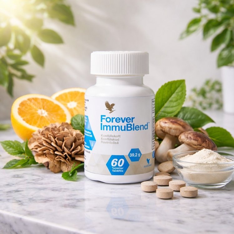 Forever ImmuBlend er et nøje sammensat kosttilskud til voksne, der ønsker at støtte kroppens normale immunfunktion i perioder, hvor behovet kan være øget. Formlen er udviklet til det skandinaviske marked og kombinerer udvalgte vitaminer, mineraler, kostfibre og traditionelle svampe i én daglig tablet.